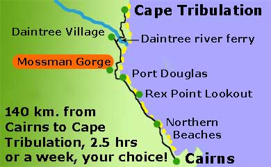 The 140 km. journey from Cairns to Cape Tribulation is one of Australia’s greatest coastal drives.